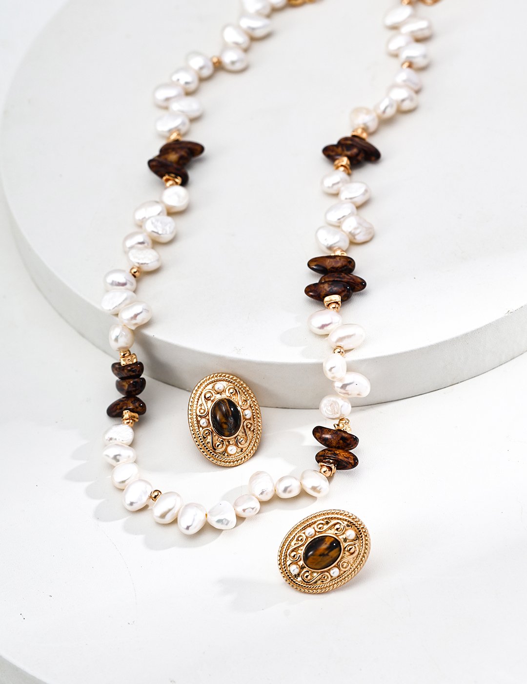 Elevate your style with this S925 Silver Natural Pearl Czech Glass Necklace, designed for those who adore vintage elegance with an edge. Featuring irregular freshwater pearls sized 4–7mm, this necklace embraces natural imperfections for an authentic, artisanal feel. The rich amber-brown Czech glass beads add warmth and dimension, creating a unique statement look.