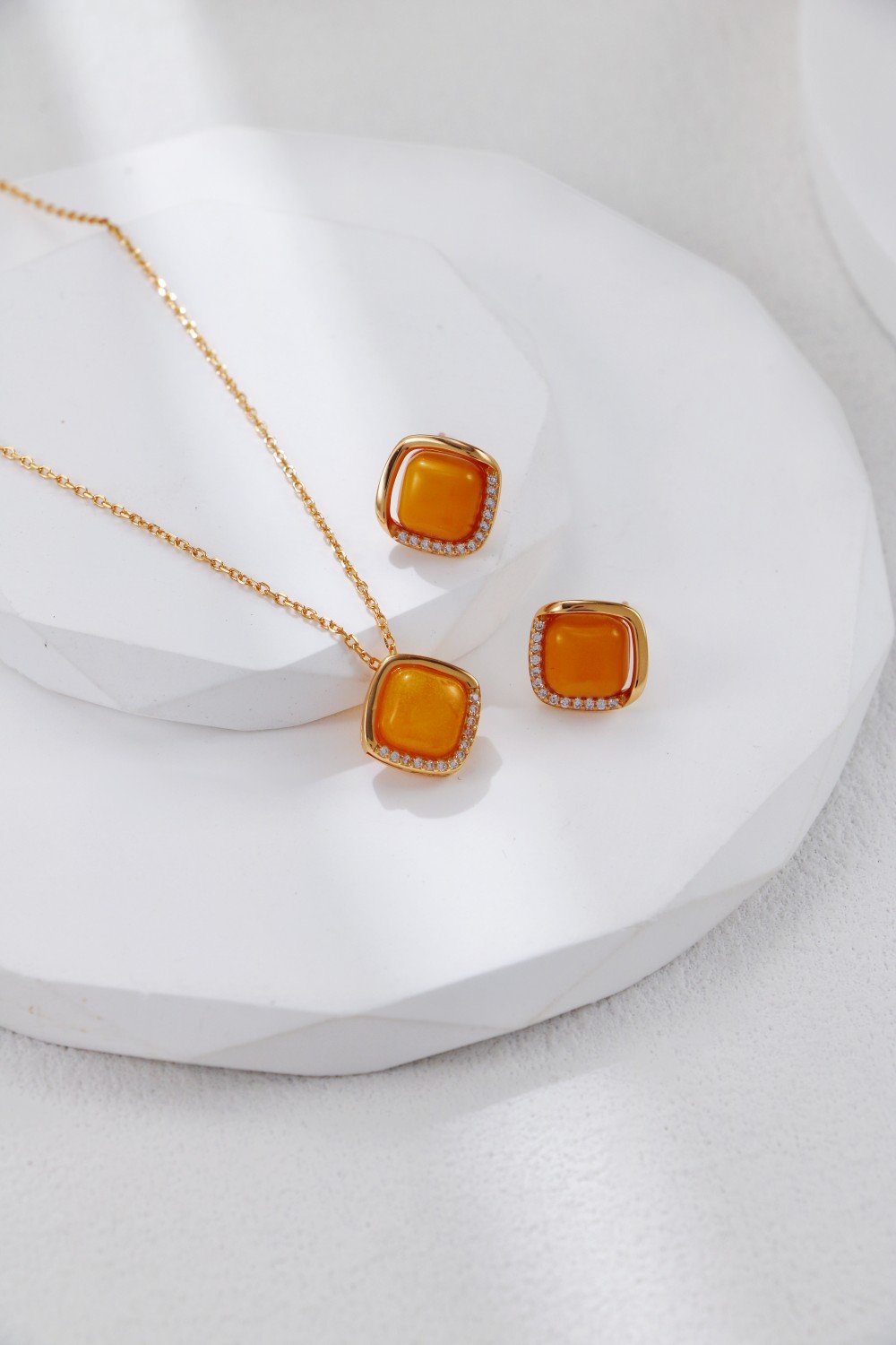 Indulge in warm-toned elegance with this S925 Silver Vintage Gold Beeswax Inlaid Zirconium Necklace & Earrings Set, an exquisite pairing that blends vintage sophistication with modern minimalism. The soft, honey-toned beeswax centerpiece is framed by a cushion-cut bezel, highlighted with shimmering zircon for a touch of sparkle.